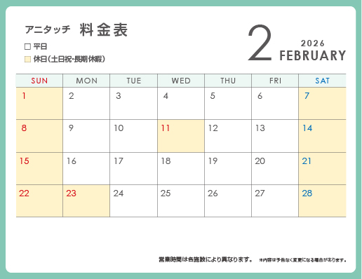 - 【平 日】 11:00〜19:00(最終受付18:30)