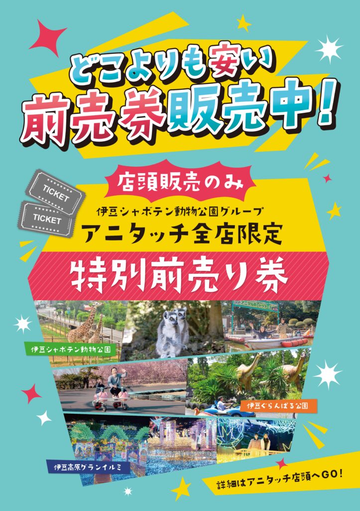 「アニタッチ」の店頭限定で、伊豆シャボテン動物公園グループの特別前売券を販売中!