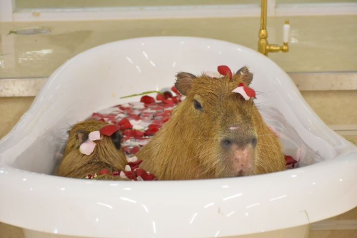 【お風呂に入るカピバラたちに癒される「カピバラの猫足風呂」】