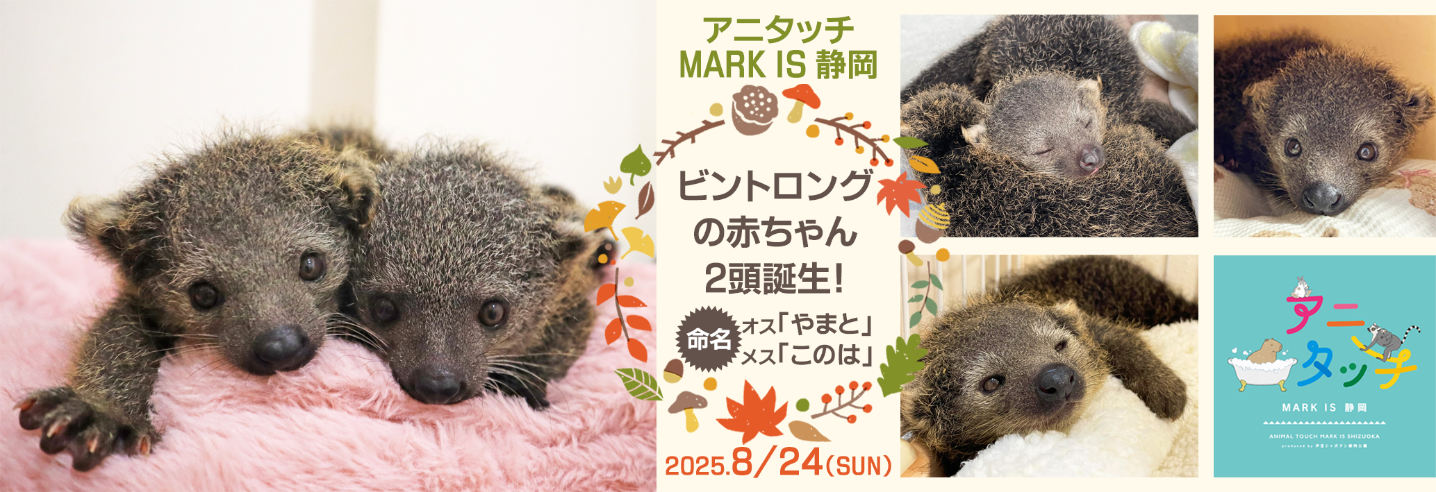 屋内型ふれあい動物園「アニタッチ MARK IS 静岡」では、2025年8月24日(日)にビントロングの父「ふじ」と母「さつき」の間に赤ちゃん2頭(オス「やまと」、メス「このは」)が誕生いたしました。